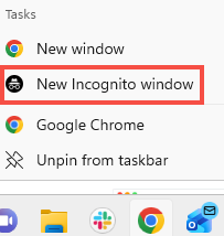 1. Open an incognito window using your Google Chrome browser. In Windows, right-click the Google Chrome icon to open the menu, then click on New Incognito Window. Alternatively, on both Mac and PC, open Chrome and click the three dots in the upper-right corner to activate the drop-down menu, then select "New incognito window."