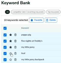 Favorited keywords are moved to the top of your Keyword Bank.