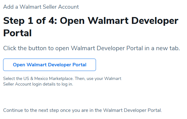 11. The next window includes the instructions for opening the Walmart Developer Portal.