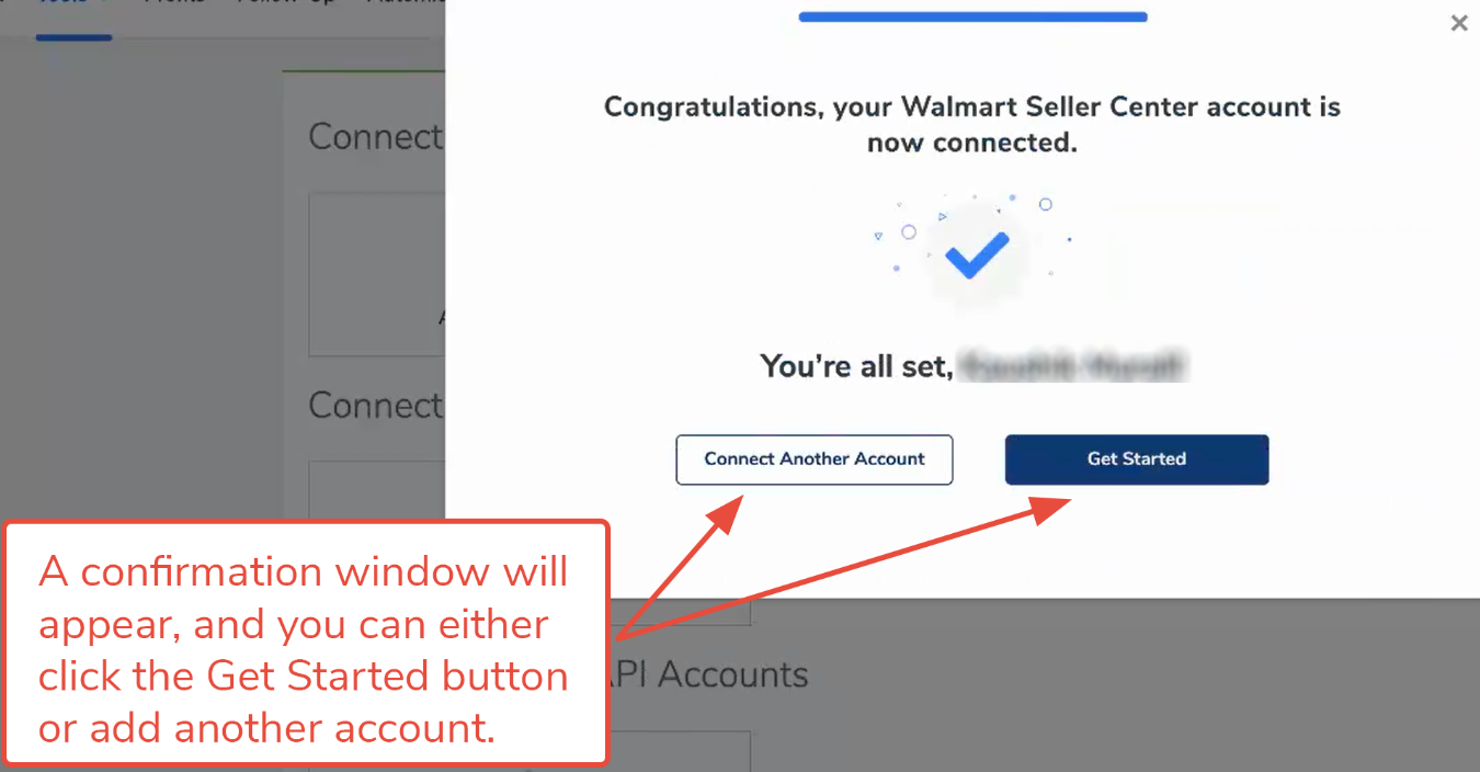 15. Helium 10 will confirm the successful linking of your Walmart and Helium 10 accounts.