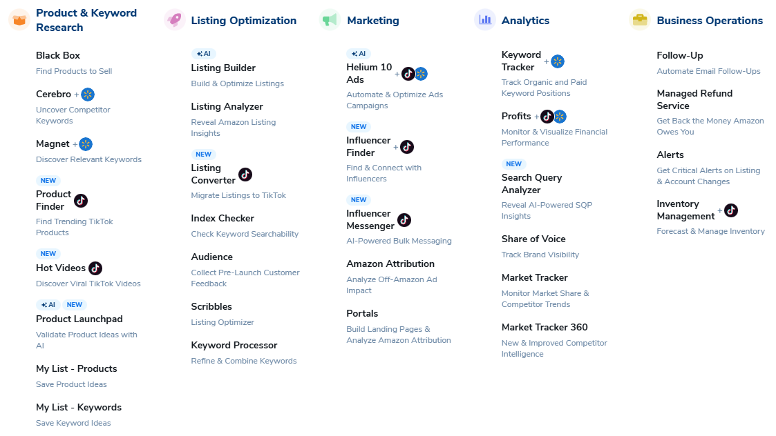 Designed for experienced users, the Classic View displays all Helium 10 tools by name. If you already know which products you need, this view provides quick and direct access.