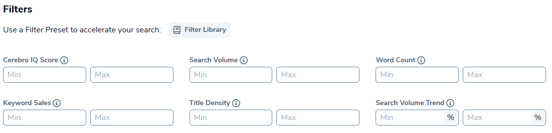 - Cerebro IQ Score: based on the ratio of estimated search volume vs. number of competing products. A high score indicates a relatively high number of searches compared to the number of competitors, and a low score means the opposite.