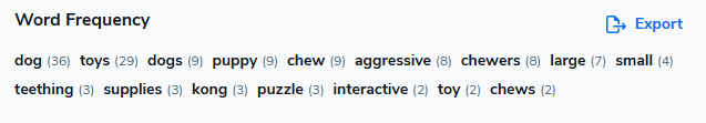 f. Word Frequency is a breakdown of the most frequent words used in the keyword phrases.
