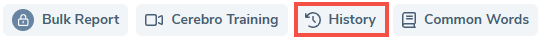 12. Cerebro (Plus Magnet) stores your searches so that you can return later and continue working on them within the tool. Select the History button to access your previous work within Cerebro (Plus Magnet).