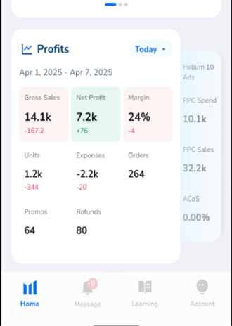 The Helium 10 Mobile App allows Amazon sellers to monitor business performance, advertising campaigns, product alerts, and account settings directly from their mobile devices. Available on both iOS and Android, the app provides real-time visibility into your Amazon business so you can make informed decisions anytime, anywhere.