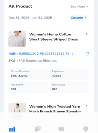 View all ASINs in your catalog along with their sales, revenue, and performance data.