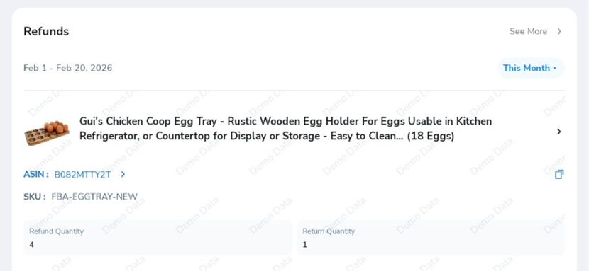 This section displays your refunded products within the selected time period.