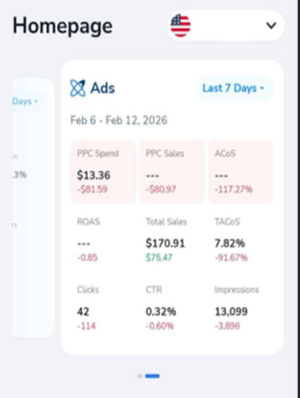 The Ads section provides an overview of your Amazon PPC campaign performance.
