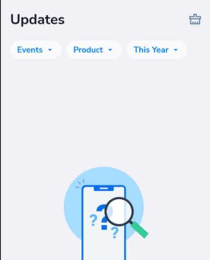 The Updates tab displays real-time notifications generated by the Alerts tool. These notifications help you monitor critical listing changes and account events.