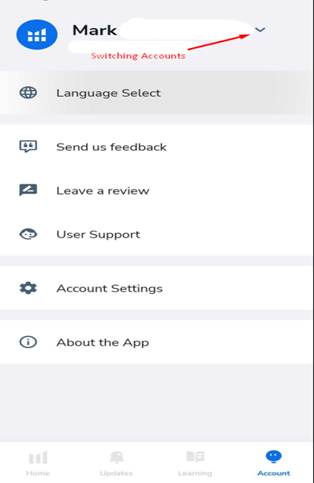 Note: Sub-users can switch between accounts using the profile dropdown within the Account tab.