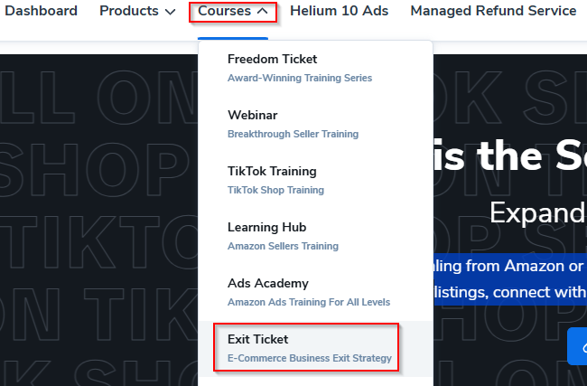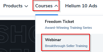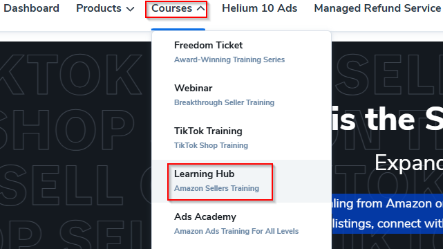 Helium 10 offers a variety of training resources to help you grow and manage your e-commerce business. All training can be accessed from the Courses drop-down menu in your dashboard.