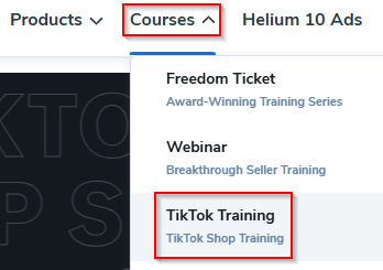 To access TikTok Training, use the Courses drop-down menu and select TikTok Training.