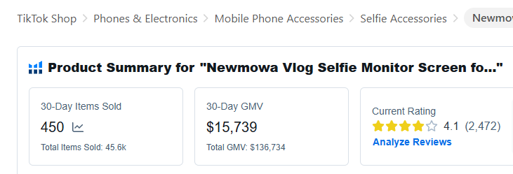 The Helium 10 TikTok Chrome Extension helps you analyze TikTok Shop products and customer feedback directly from the product page—turning raw data into actionable insights for better decision-making.