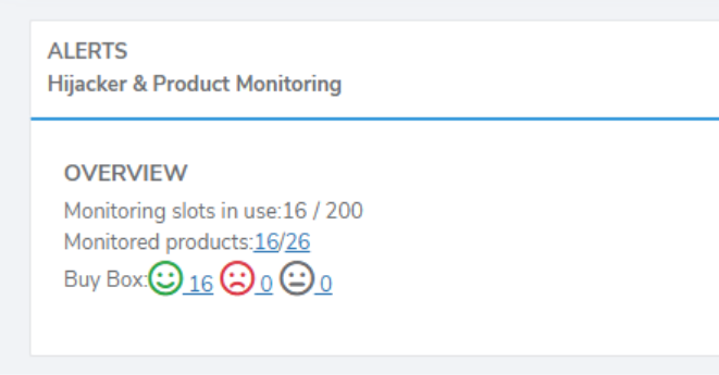 - Use the face icons under the overview section. -- The number beside the face indicates how many of your monitored products have won/lost the Buy Box