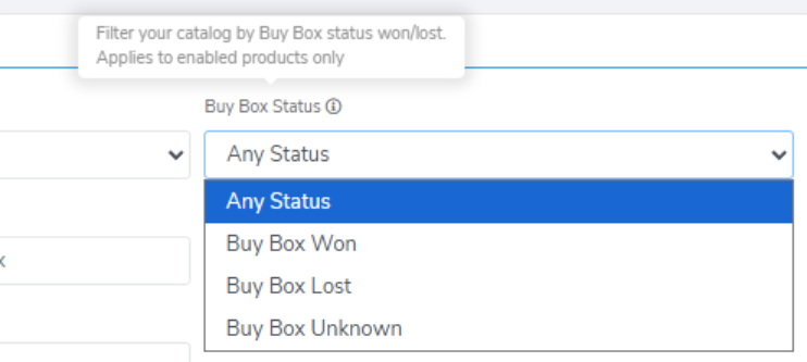 - Use the “Buy Box Status” filter, which can be found in the filters section of the tool.