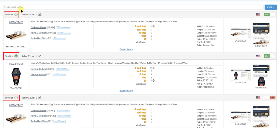 Buy Box information is only available for ASINs that have been added to Alerts and are actively being monitored. To ensure you receive these notifications, enable monitoring for these products in Alerts.